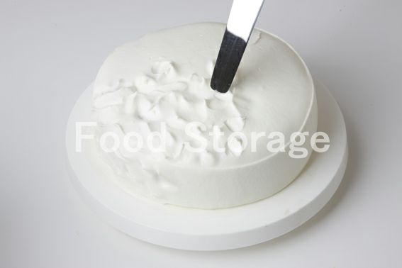 4の表面にはけで5を塗り、6のホイップクリームを全体にぬる。パレットナイフの先端を軽く押し付けるように上下させ、模様をつける。 |