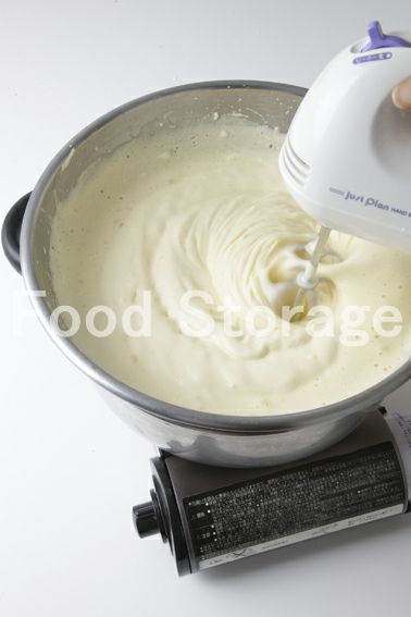 湯せんからはずし、ハンドミキサーを低速にして1分ほど泡立て、全体のキメを整える。