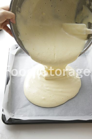 天板を軽く持ち上げ、ぬれぶきんを敷いた台の上に軽く2〜3回落とすようにして生地の中の空気を抜いたら、190℃に予熱したオーブンで14〜16分焼く。