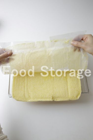 オーブンシートごと天板からはずしてケーキクーラーの上にのせ、粗熱が取れたら乾燥しないように乾いた布巾をかけて冷ます。