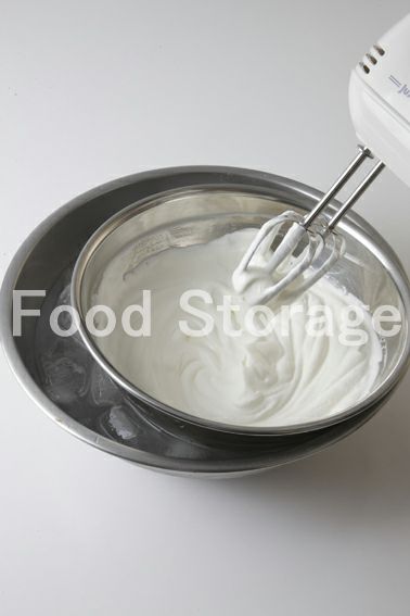 ボウルにBを入れ、ボウルの底を氷水に冷やしながら、ハンドミキサーで7分立てに泡立てる。