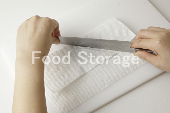 紅茶の茶葉は、ペーパータオルではさんで包丁の背でたたいて、刻む。
