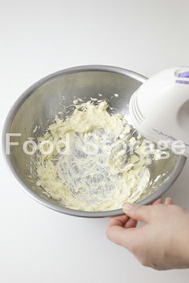 粉砂糖を加え、白っぽくなるまでさらにハンドミキサーでよく混ぜる。