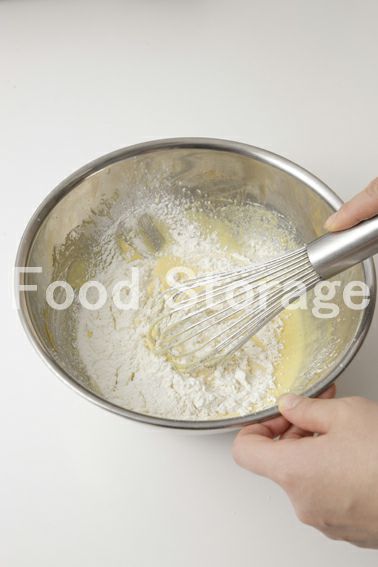 1に薄力粉をふるい入れて、泡立て器で粉っぽさがなくなるまで混ぜる。