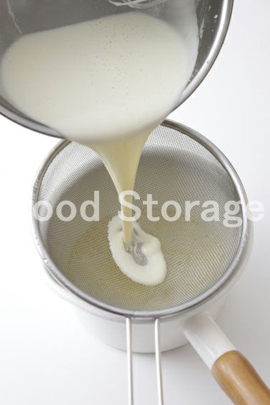 こし器でこしながら、牛乳を温めた鍋に戻し入れ、生地をなめらかにする。