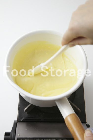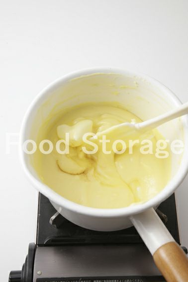 火を止め、バター、バニラオイルを加え、余熱でバターを溶かしながらよく混ぜ合せる。