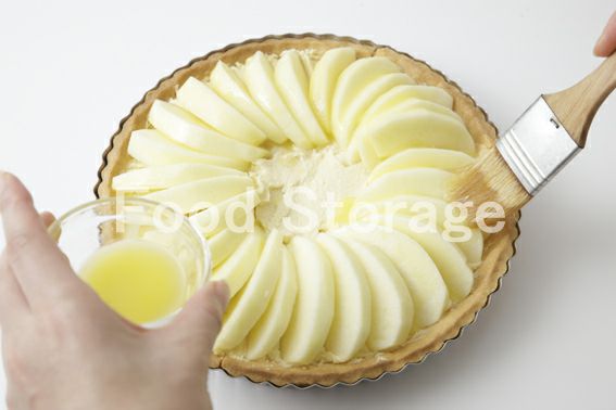 | フィリングとりんごをのせていっしょに香ばしく焼きあげたタルト |