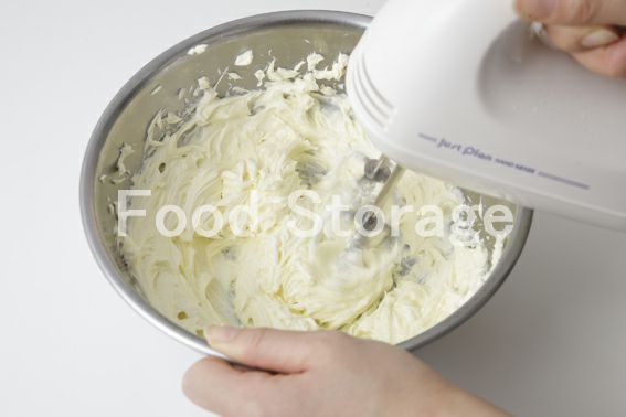 室温に戻したAをボウルに入れ、ハンドミキサーでなめらかなクリーム状になるまで混ぜる。