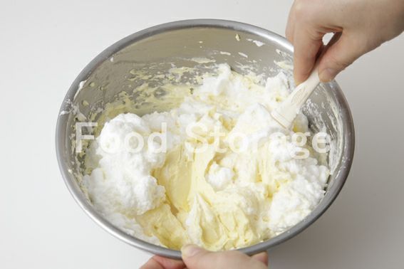 残りの3を加え、ゴムべらでメレンゲの泡をつぶさないようにさっくりと混ぜ合わせる。