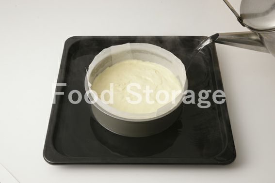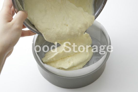 準備しておいた型に、6の生地を流し入れ、回して表面を平らにならす。