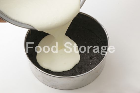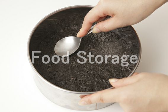 丸型(底が抜けるタイプ)に入れ、スプーンの背で押さえながら均等の厚さになるように敷き詰める。型にラップをかけて冷蔵庫で冷やし固める。