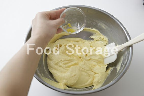 1にレモンの皮のすりおろしを加えて混ぜる。