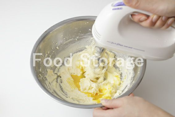 卵を溶きほぐし、2に3〜4回に分けて加え、その都度ハンドミキサーでよく混ぜる。