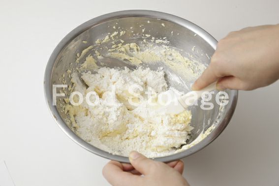5に残り半分のAを加え、粉っぽさがなくなるまでゴムべらで混ぜる。