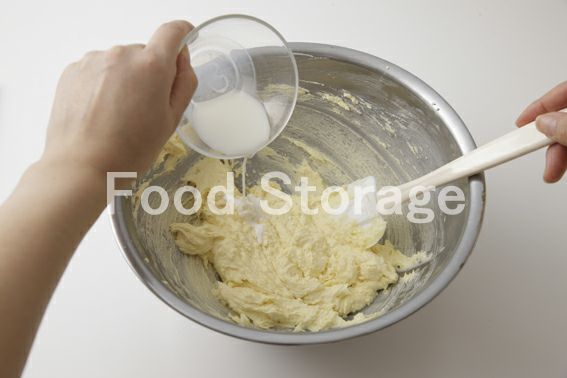 4に牛乳を加えてゴムべらで混ぜ、残りの粉がなじみやい生地にする。