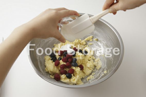 A(薄力粉 ベーキングパウダー)B(ブルーベリー ラズベリー ヨーグルト)