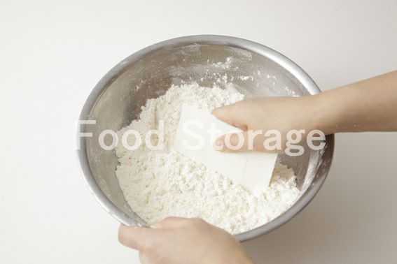 2の細かく刻んだバターを、カードで粉に混ぜ込み、なじませる。