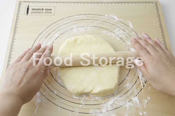 めん台とめん棒に打ち粉用の強力粉適量(分量外)をはたき、4の生地をのせてめん棒で2.5cm厚さにのばす。