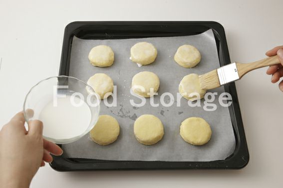 7を準備した天板にのせ、表面にはけでつや出し用の牛乳を塗る。