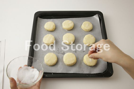 8の上からグラニュー糖をふり、180℃に予熱したオーブンで16分ほど焼き、熱いうちに好みのクリーム、ジャムをつけていただく。 |