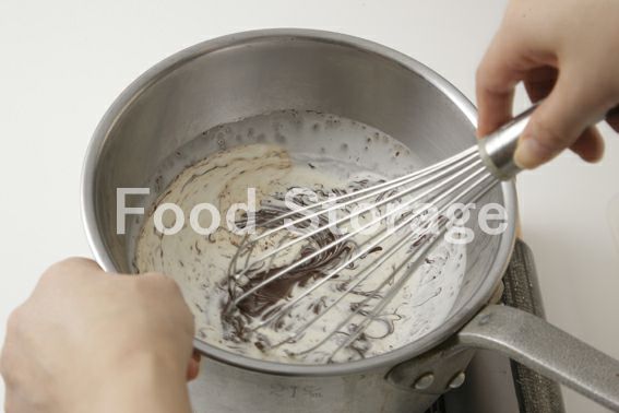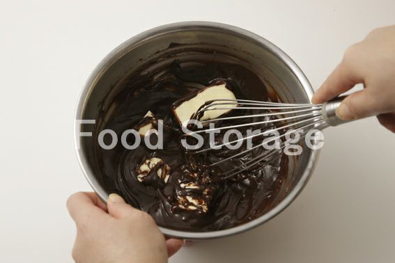 ボウルにチョコレート、生クリームを入れ、湯せんにかけてチョコを溶かしながら混ぜ合わせる。 |