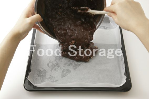 4にくるみを加えて混ぜ合わせ、準備した天板に流し入れて表面をカードで平らにならす。 |