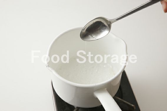 小鍋にAを入れて弱火にかけ、混ぜずに鍋をゆすりながら加熱し、スプーンですくって糸をひくくらいまで煮詰める。 |