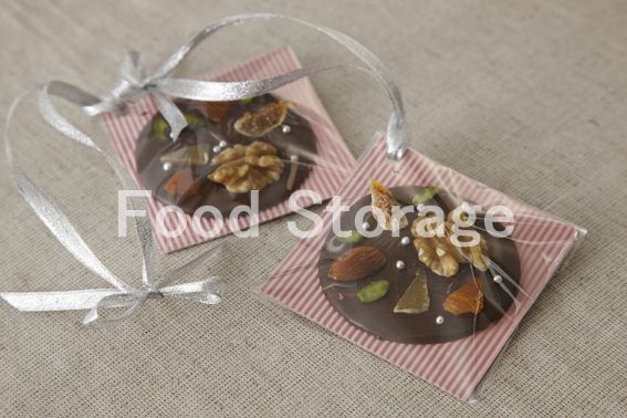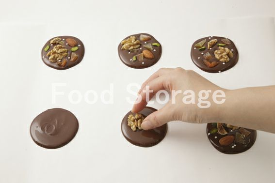 スイートチョコレート(コーティング用) くるみ、ピスタチオ、アーモンドなどのナッツ類 いちじく、パパイヤなどのドライフルーツ類 アラザン