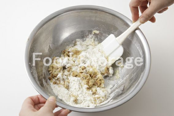 Aをふるい入れたボウルに3を加え、ゴムベラでまんべんなく混ぜる。 |