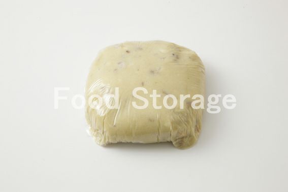 4の生地をひとまとめにしてラップに包み、冷蔵庫で30分休ませる。冷やしすぎると扱いにくくなるので、30分を超えないこと。 |