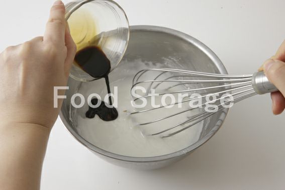 ボウルに卵白と粉砂糖を入れて泡立て器でよく練り混ぜ、Cを加えて混ぜ合わせ、モカアイシングを作る。 |