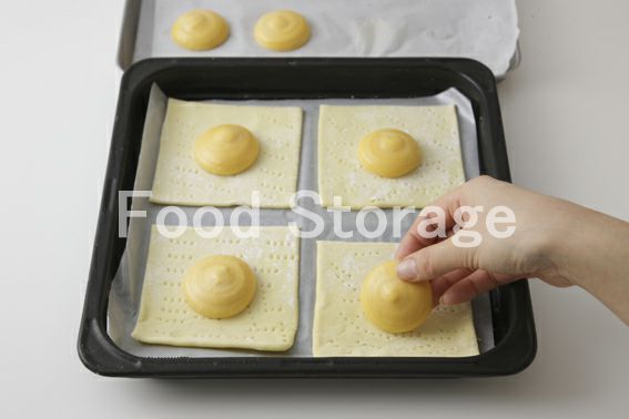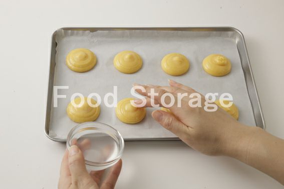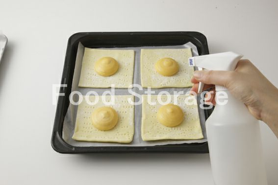 4の凍ったシュー生地に霧を吹いて乾燥を防ぐ。 |