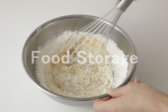 1にふるった薄力粉を加え、粉っぽさがなくなるまで混ぜ合わせる。 |