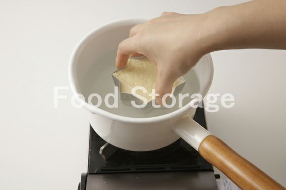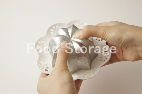 5が固まったら、冷蔵庫から出し、熱湯に型をさっと浸けて抜きやすくする。 |
