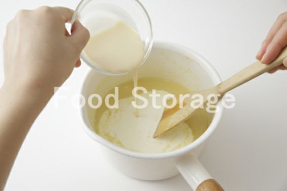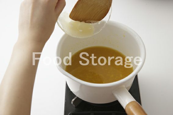 2が熱いうちにふやかしたゼラチンを加え、混ぜて溶かす。 |