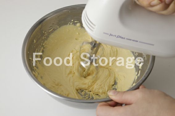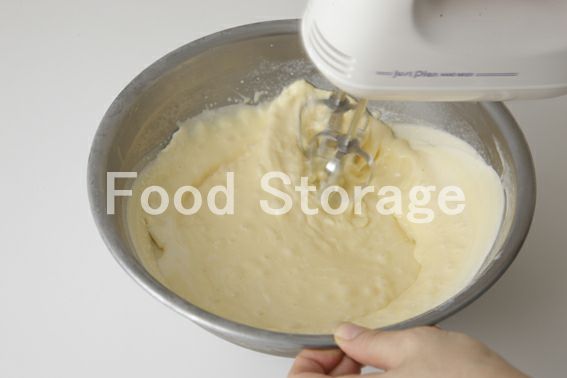 小鍋に牛乳を入れて人肌程度に温め、1に少しずつ加えながらハンドミキサーの低速で混ぜ合わせる。 |