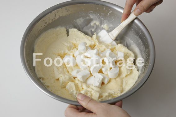 7を1時間ごとに取り出して泡立て器でかき混ぜる。これを2回繰り返す。3回目にマシュマロを加えて混ぜ、器に盛って8をトッピングする。 |