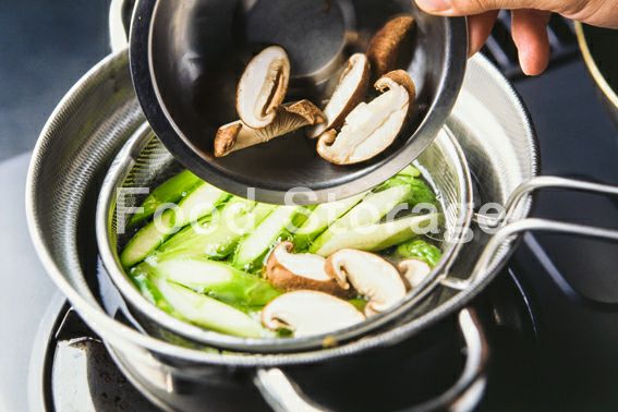 鍋に熱湯を沸かして1のアスパラ、しいたけをさっと茹でてザルに上げて水けをきる。 |