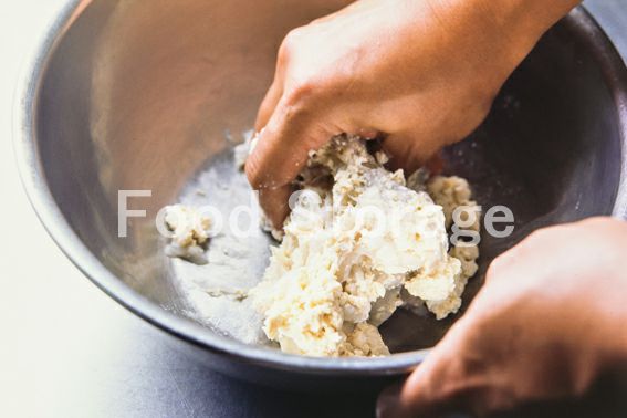 豆腐はしっかりと水きりをして手でくずす。むきえびはフードプロセッサーでなめらかになるまで攪拌する。 |