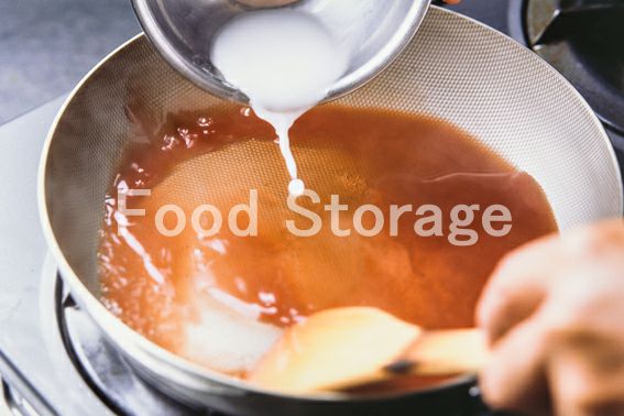 甘酢あんを作る。フライパン(又は鍋)にBを入れて沸かし、水溶き片栗粉でとろみをつける。 |