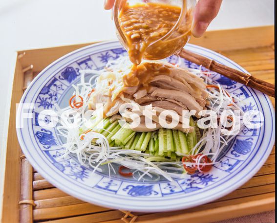 | すっかり定番となった棒々鶏。鶏肉はゆですぎに注意します。 |