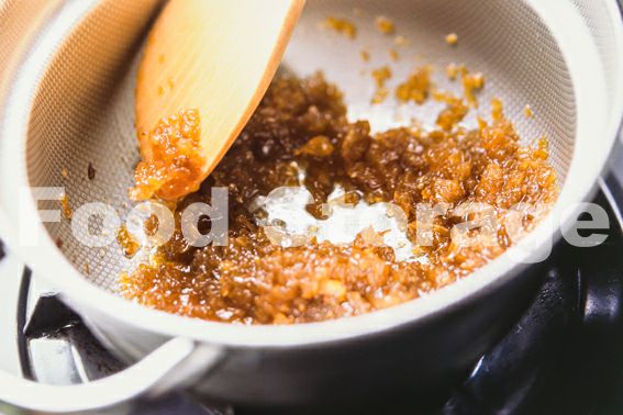 鍋にサラダ油を熱してAと1の玉ねぎを加え中火であめ色になるまで炒める。 |