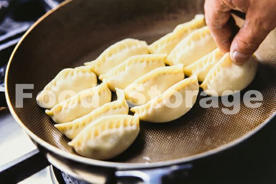 フライパンをよく熱し、サラダ油をしき油を餃子のおしりにつける感じでそっと並べて、中火で焼く。 |