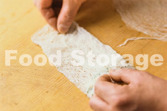 ライスペーパーを1枚ずつ広げて霧吹きしてしめらせる。 |