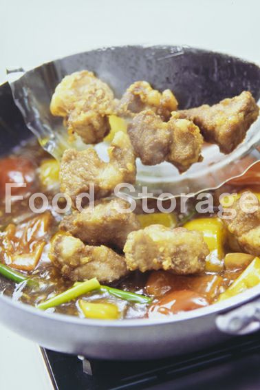 豚肩ロース肉は4cm角に切ってAをよくもみ込む。片栗粉をまぶし、170℃の揚げ油でカラッと揚げる。 |