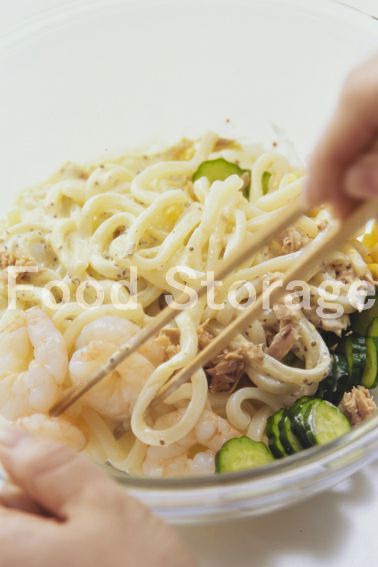 冷凍うどんは熱湯でさっとゆでて、冷水で洗い、水けをきる。 |