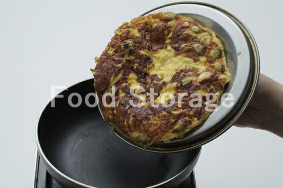 小さめのフライパンにバターを溶かし、1、2を炒め合わせ、Aを流し入れ、ふたをして2〜3分蒸し焼きにする。裏返して1〜2分焼き、4等分に切って器に盛る。 |