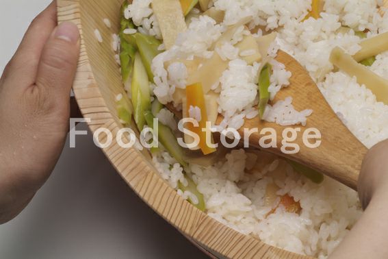1米は洗ってざるにあげ、分量の水で炊いて飯台にうつす。Aを回し入れてしゃもじで切るように混ぜ合わせ、うちわであおいで粗熱をとる。 2 うど、たけのこ、にんじんは3cm長さの短冊切りにする。 3 グリーンアスパラガスは根元5cm程度の皮をむき、3cm長さの斜め切りに、そらまめは薄皮をむく。 4 鍋にBを沸かし、2を入れて5分ほど煮、3を加えてさっと煮、冷ましておく。 5 むきえびは塩ゆでし、卵は溶きほぐしてフライパンに流し入れ、いり卵を作る。 6 1に4を加えてさっくりと混ぜ合わせ、器に盛って5を散らす。 |