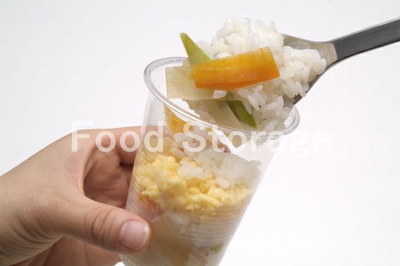 | ちらしずしをクリアカップにつめ、見た目もきれいなサラダ感覚のおすしに。持ち運びにも便利ですが、外でも食べやすいようにアレンジしました。 |