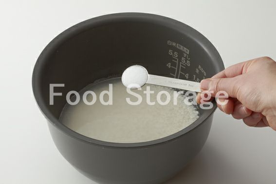 米はといでざるに上げ、水けを切って炊飯器の内釜に入れ、2合の目盛りまで水を加えて30分ほど浸す。